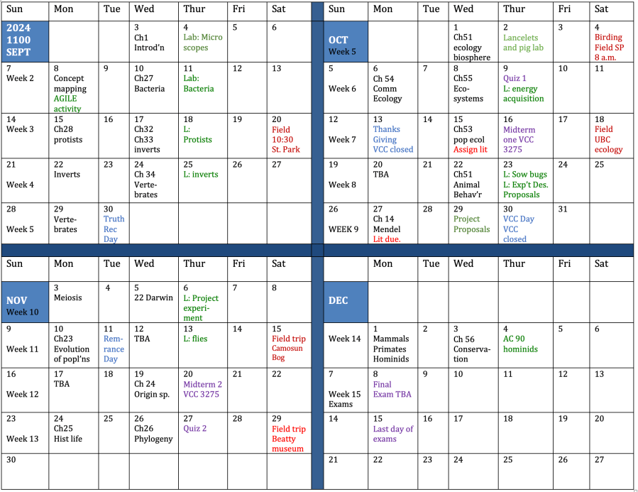 Biology 1200 Daily Schedules