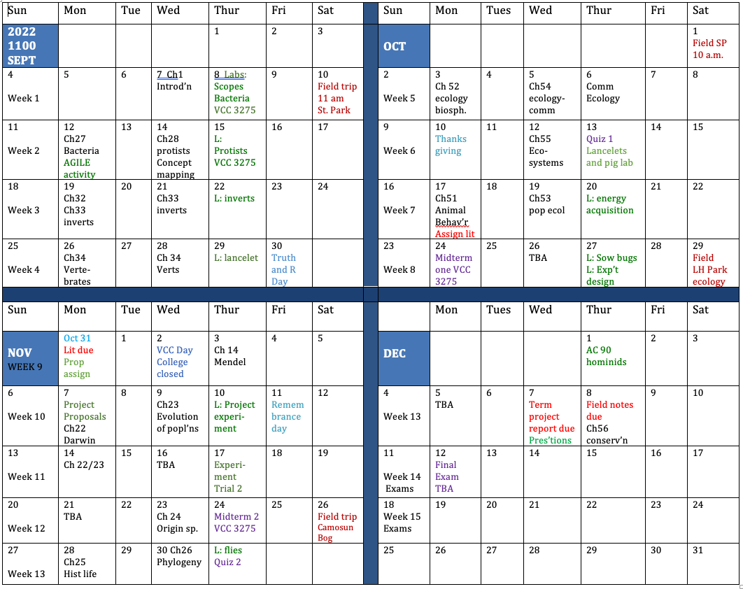 Biology 1200 Daily Schedules