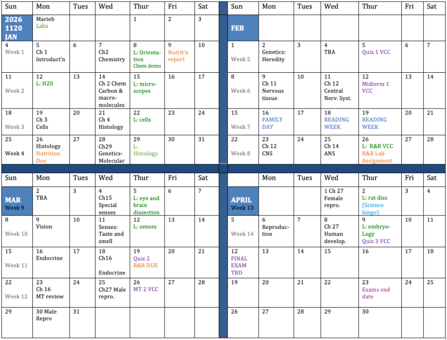 Anatomy & Physiology – BIOL 1120 – Daily Schedules