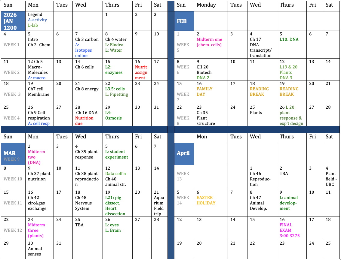 Note: Biology 1200 is only offered in the Jan-April term at VCC at the moment.
